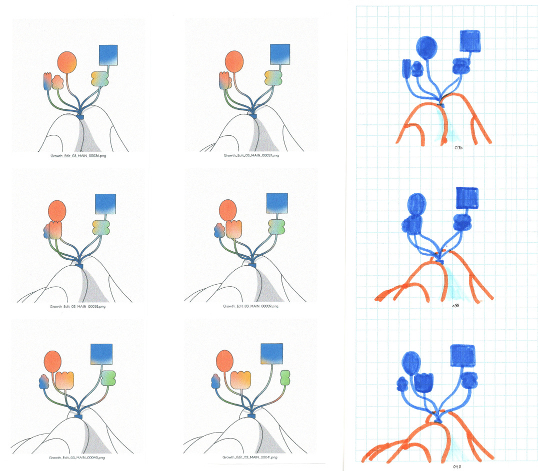 I did some tests in both sketch and animation form, trying to get a more specific feeling for the motion.
