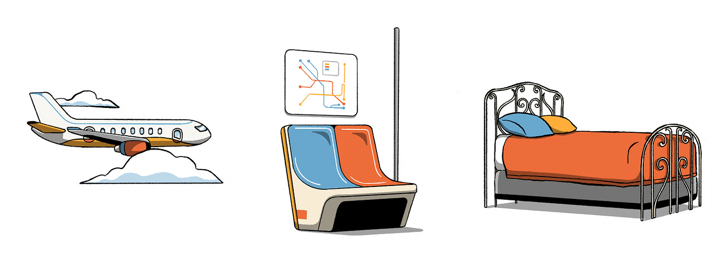 With travel on the mind, I channeling that thinking into a morphing loop going through the distinct stages of my trip, ending in a bed at my airbnb.